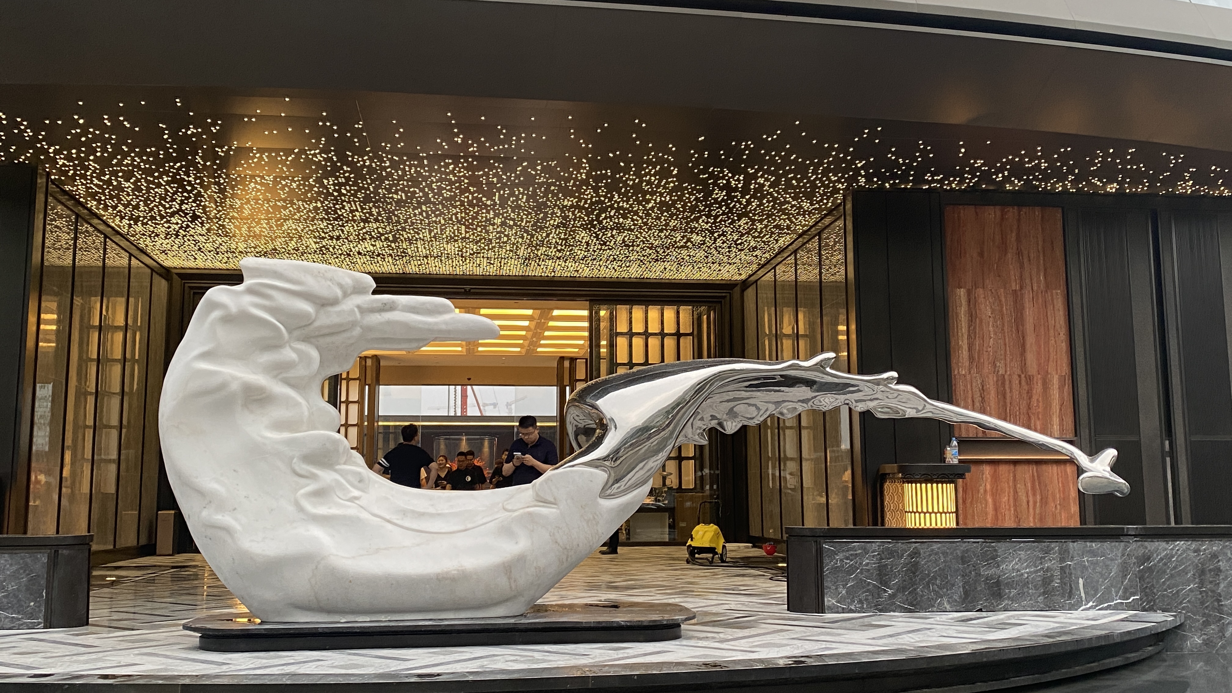 城市公共空间:如西安大雁塔南广场的“抽象几何不锈钢雕塑”,采用镜面处理,反射大雁塔轮廓,成为城市地标;