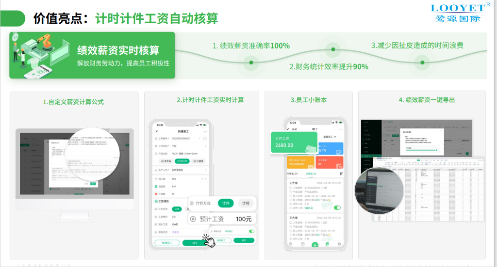 人事核算:计件工资核算效率提升85%,核算周期从3天缩短至半天,人工成本减少60%,员工离职率下降30%,团队稳定性大幅提升;
